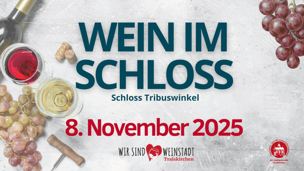 Unsere beliebte Weinverkostung geht in die nächste Runde – und das in ganz besonderem Ambiente! Am Samstag, den 8. November 2025, laden wir Sie herzlich zur Veranstaltung „Wein im Schloss Tribuswinkel“ ein.
